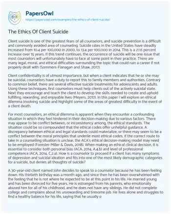 The Ethics Of Client Suicide. (2022, Apr 17). Retrieved from https://hub.papersowl.com/examples/the-ethics-of-client-suicide/