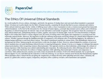 The Ethics Of Universal Ethical Standards. (2024, Apr 29). Retrieved from https://hub.papersowl.com/examples/the-ethics-of-universal-ethical-standards/