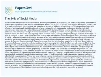 The Evils of Social Media. (2019, May 15). Retrieved from https://hub.papersowl.com/examples/the-evil-of-media/