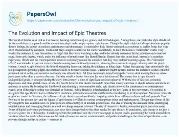The Evolution and Impact of Epic Theatres. (2023, Oct 26). Retrieved from https://hub.papersowl.com/examples/the-evolution-and-impact-of-epic-theatres/