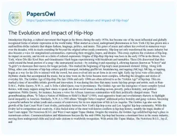 The Evolution and Impact of Hip-Hop. (2025, Jul 16). Retrieved from https://hub.papersowl.com/examples/the-evolution-and-impact-of-hip-hop/