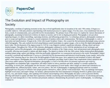 The Evolution and Impact of Photography on Society. (2025, Mar 27). Retrieved from https://hub.papersowl.com/examples/the-evolution-and-impact-of-photography-on-society/