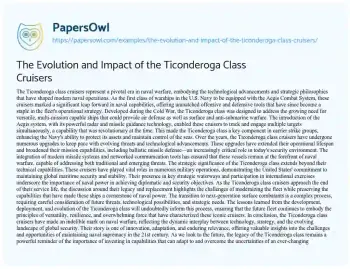 The Evolution and Impact of the Ticonderoga Class Cruisers. (2024, Feb 20). Retrieved from https://hub.papersowl.com/examples/the-evolution-and-impact-of-the-ticonderoga-class-cruisers/