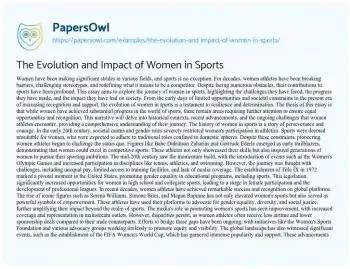 The Evolution and Impact of Women in Sports. (2025, Mar 27). Retrieved from https://hub.papersowl.com/examples/the-evolution-and-impact-of-women-in-sports/