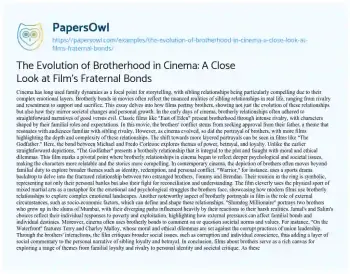 The Evolution of Brotherhood in Cinema: A Close Look at Film's Fraternal Bonds. (2024, May 12). Retrieved from https://hub.papersowl.com/examples/the-evolution-of-brotherhood-in-cinema-a-close-look-at-films-fraternal-bonds/