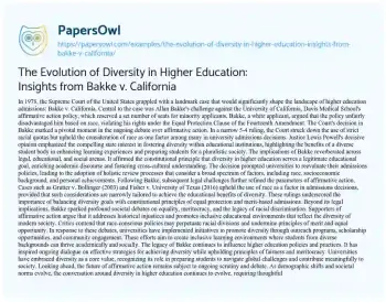 The Evolution of Diversity in Higher Education: Insights from Bakke v. California. (2024, Jun 17). Retrieved from https://hub.papersowl.com/examples/the-evolution-of-diversity-in-higher-education-insights-from-bakke-v-california/