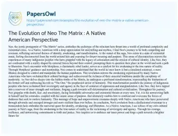 The Evolution of Neo The Matrix : A Native American Perspective. (2024, Feb 27). Retrieved from https://hub.papersowl.com/examples/the-evolution-of-neo-the-matrix-a-native-american-perspective/