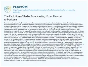 The Evolution of Radio Broadcasting: From Marconi to Podcasts. (2024, Mar 18). Retrieved from https://hub.papersowl.com/examples/the-evolution-of-radio-broadcasting-from-marconi-to-podcasts/