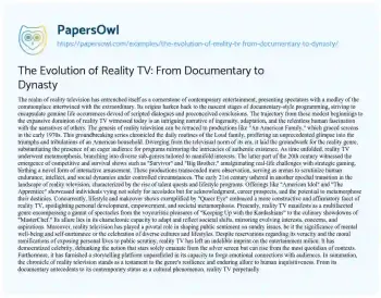 The Evolution of Reality TV: From Documentary to Dynasty. (2024, Mar 01). Retrieved from https://hub.papersowl.com/examples/the-evolution-of-reality-tv-from-documentary-to-dynasty/