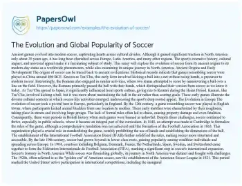 The Evolution and Global Popularity of Soccer. (2020, Mar 31). Retrieved from https://hub.papersowl.com/examples/the-evolution-of-soccer/