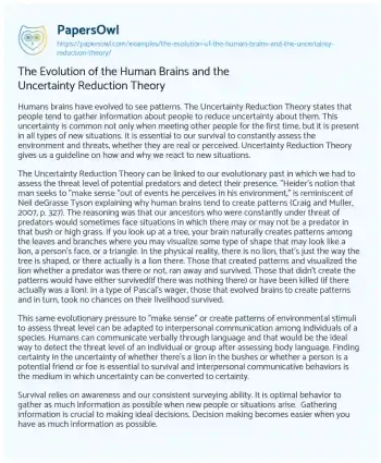 The Evolution of the Human Brains and the Uncertainty Reduction Theory. (2022, Nov 18). Retrieved from https://hub.papersowl.com/examples/the-evolution-of-the-human-brains-and-the-uncertainty-reduction-theory/