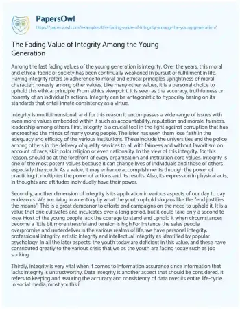 The Fading Value of Integrity Among the Young Generation. (2022, Nov 22). Retrieved from https://hub.papersowl.com/examples/the-fading-value-of-integrity-among-the-young-generation/