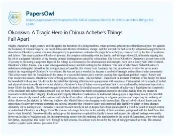 Okonkwo: A Tragic Hero in Chinua Achebe’s Things Fall Apart. (2021, Jun 03). Retrieved from https://hub.papersowl.com/examples/the-fall-of-national-identity-in-chinua-achebes-things-fall-apart/
