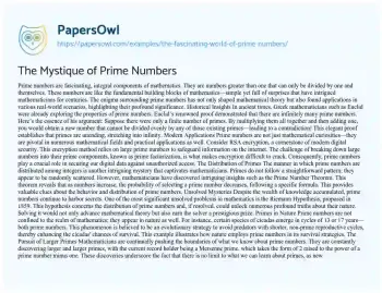 The Mystique of Prime Numbers. (2024, Jul 06). Retrieved from https://hub.papersowl.com/examples/the-fascinating-world-of-prime-numbers/