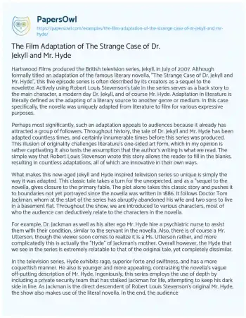 The Film Adaptation of The Strange Case of Dr. Jekyll and Mr. Hyde