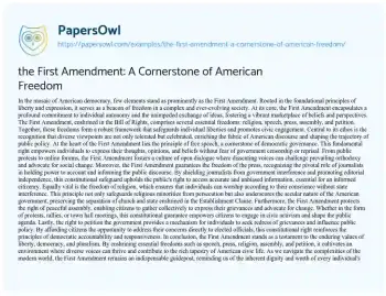 the First Amendment: A Cornerstone of American Freedom. (2024, May 12). Retrieved from https://hub.papersowl.com/examples/the-first-amendment-a-cornerstone-of-american-freedom/
