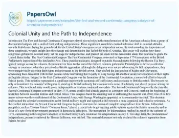 Colonial Unity and the Path to Independence. (2024, Jul 06). Retrieved from https://hub.papersowl.com/examples/the-first-and-second-continental-congress-catalysts-of-american-independence/