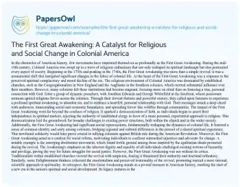 The First Great Awakening: A Catalyst for Religious and Social Change in Colonial America. (2024, Jun 17). Retrieved from https://hub.papersowl.com/examples/the-first-great-awakening-a-catalyst-for-religious-and-social-change-in-colonial-america/