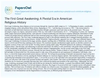 The First Great Awakening: A Pivotal Era in American Religious History. (2024, Jul 16). Retrieved from https://hub.papersowl.com/examples/the-first-great-awakening-a-pivotal-era-in-american-religious-history/
