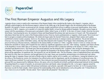 The First Roman Emperor: Augustus and His Legacy. (2024, May 12). Retrieved from https://hub.papersowl.com/examples/the-first-roman-emperor-augustus-and-his-legacy/