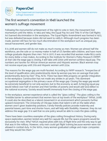The first women’s convention in 1848 launched the women’s suffrage movement. (2021, Nov 30). Retrieved from https://hub.papersowl.com/examples/the-first-womens-convention-in-1848-launched-the-womens-suffrage-movement/