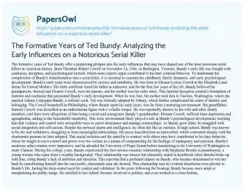 The Formative Years of Ted Bundy: Analyzing the Early Influences on a Notorious Serial Killer. (2024, Jun 17). Retrieved from https://hub.papersowl.com/examples/the-formative-years-of-ted-bundy-analyzing-the-early-influences-on-a-notorious-serial-killer/