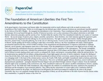 The Foundation of American Liberties: the First Ten Amendments to the Constitution. (2024, May 12). Retrieved from https://hub.papersowl.com/examples/the-foundation-of-american-liberties-the-first-ten-amendments-to-the-constitution/