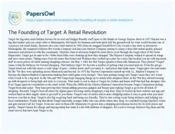 The Founding of Target: A Retail Revolution. (2024, Jul 06). Retrieved from https://hub.papersowl.com/examples/the-founding-of-target-a-retail-revolution/