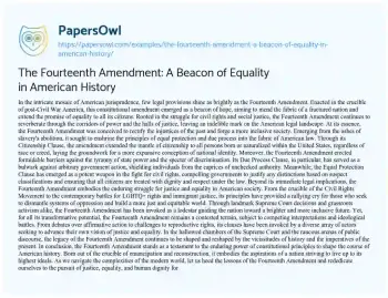 The Fourteenth Amendment: A Beacon of Equality in American History. (2024, May 21). Retrieved from https://hub.papersowl.com/examples/the-fourteenth-amendment-a-beacon-of-equality-in-american-history/