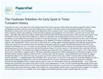 The Fredonian Rebellion: An Early Spark in Texas' Turbulent History. (2023, Dec 01). Retrieved from https://hub.papersowl.com/examples/the-fredonian-rebellion-an-early-spark-in-texas-turbulent-history/