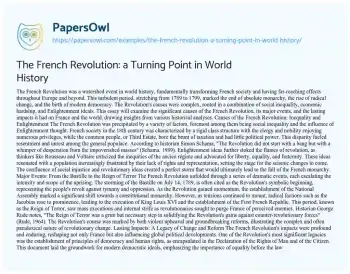 The French Revolution: a Turning Point in World History. (2025, Mar 27). Retrieved from https://hub.papersowl.com/examples/the-french-revolution-a-turning-point-in-world-history/