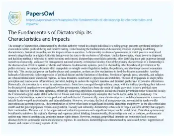 The Fundamentals of Dictatorship: its Characteristics and Impacts. (2024, May 12). Retrieved from https://hub.papersowl.com/examples/the-fundamentals-of-dictatorship-its-characteristics-and-impacts/