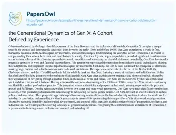 Order now Growing up amidst economic instability and witnessing the rise of dual-income households, Gen Xers developed a pragmatic approach to work and financial independence. This generation experienced the transition from analog to digital technologies, shaping their adaptability and skepticism towards rapid technological advancements.