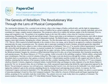 The Genesis of Rebellion: The Revolutionary War Through the Lens of Musical Composition