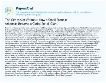 The Genesis of Walmart: How a Small Store in Arkansas Became a Global Retail Giant. (2024, May 12). Retrieved from https://hub.papersowl.com/examples/the-genesis-of-walmart-how-a-small-store-in-arkansas-became-a-global-retail-giant/