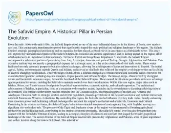 The Safavid Empire: A Historical Pillar in Persian Evolution. (2024, Jul 06). Retrieved from https://hub.papersowl.com/examples/the-geographical-extent-of-the-safavid-empire/