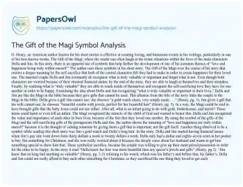 This essay will analyze the use of symbolism in O. Henry’s short story “The Gift of the Magi,” focusing on how symbols like the Magi and the gifts enhance the themes of love, sacrifice, and irony. Also at PapersOwl you can find more free essay examples related to Analysis.