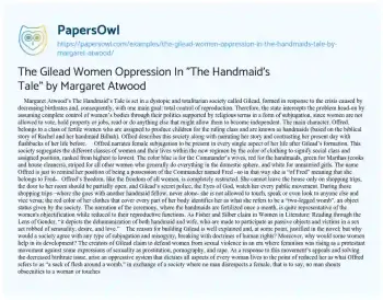 The Gilead Women Oppression In "The Handmaid's Tale" by Margaret Atwood. (2021, May 31). Retrieved from https://hub.papersowl.com/examples/the-gilead-women-oppression-in-the-handmaids-tale-by-margaret-atwood/