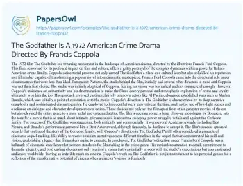 The Godfather Is A 1972 American Crime Drama Directed By Francis Coppola. (2024, Apr 22). Retrieved from https://hub.papersowl.com/examples/the-godfather-is-a-1972-american-crime-drama-directed-by-francis-coppola/