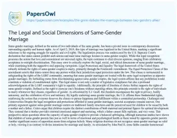 The Legal and Social Dimensions of Same-Gender Marriage. (2021, Mar 23). Retrieved from https://hub.papersowl.com/examples/the-great-debate-the-marriage-between-two-genders-alike/