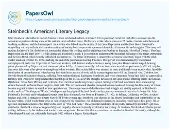 Steinbeck's American Literary Legacy. (2022, Feb 10). Retrieved from https://hub.papersowl.com/examples/the-great-depression-and-john-steinbeck/