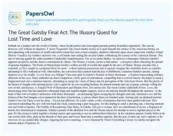 The Great Gatsby Final Act: The Illusory Quest for Lost Time and Love