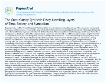 The Great Gatsby Synthesis Essay: Unveiling Layers of Time, Society, and Symbolism. (2023, Sep 12). Retrieved from https://hub.papersowl.com/examples/the-great-gatsby-synthesis-essay-unveiling-layers-of-time-society-and-symbolism/