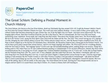 The Great Schism: Defining a Pivotal Moment in Church History. (2024, Jun 28). Retrieved from https://hub.papersowl.com/examples/the-great-schism-defining-a-pivotal-moment-in-church-history/