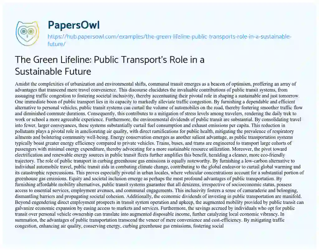 The Green Lifeline: Public Transport's Role in a Sustainable Future. (2024, Mar 01). Retrieved from https://hub.papersowl.com/examples/the-green-lifeline-public-transports-role-in-a-sustainable-future/
