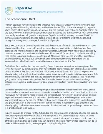 The Greenhouse Effect. (2020, Mar 31). Retrieved from https://hub.papersowl.com/examples/the-greenhouse-effect/