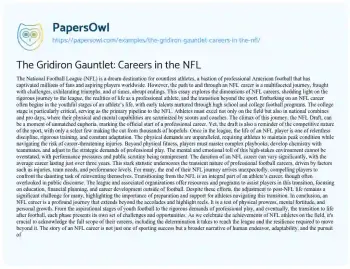 The Gridiron Gauntlet: Careers in the NFL. (2024, Apr 01). Retrieved from https://hub.papersowl.com/examples/the-gridiron-gauntlet-careers-in-the-nfl/