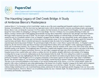 The Haunting Legacy of Owl Creek Bridge: A Study of Ambrose Bierce's Masterpiece. (2024, Jun 17). Retrieved from https://hub.papersowl.com/examples/the-haunting-legacy-of-owl-creek-bridge-a-study-of-ambrose-bierces-masterpiece/