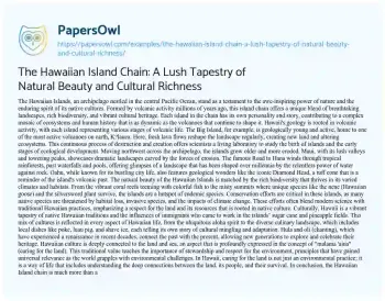 The Hawaiian Island Chain: A Lush Tapestry of Natural Beauty and Cultural Richness. (2024, May 12). Retrieved from https://hub.papersowl.com/examples/the-hawaiian-island-chain-a-lush-tapestry-of-natural-beauty-and-cultural-richness/