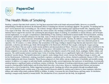 The Health Risks of Smoking. (2025, Mar 28). Retrieved from https://hub.papersowl.com/examples/the-health-risks-of-smoking/